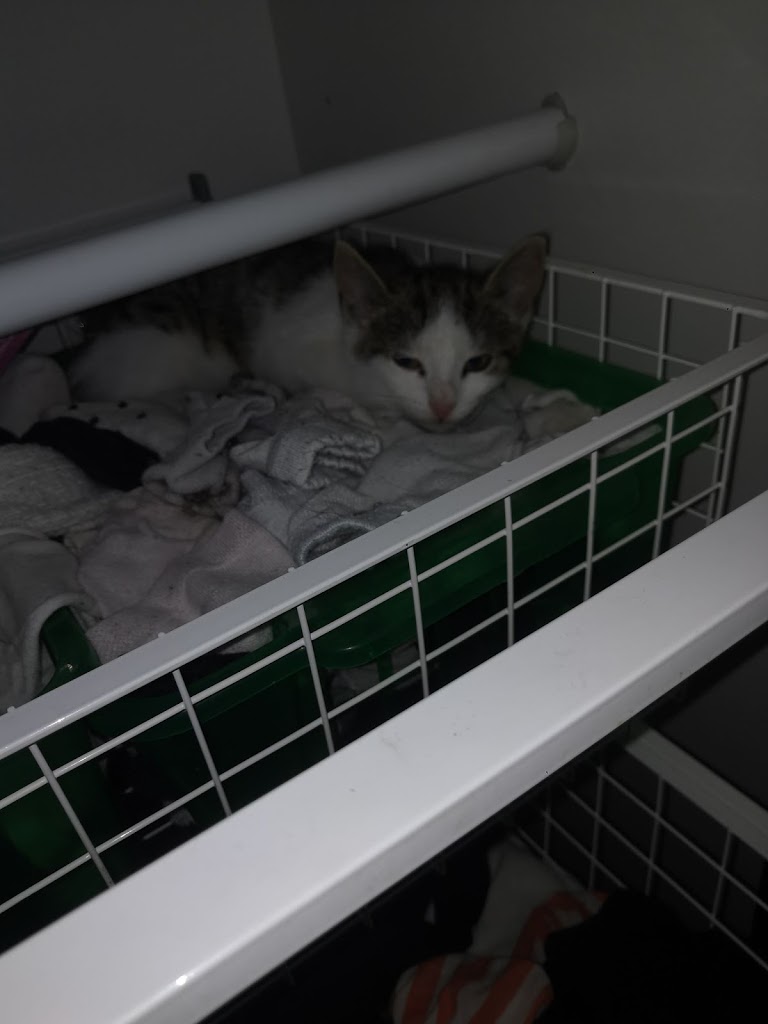 Pieni hetki ja tyhjää täyttämään tuli emo kolmen lähes luovutusikäisen pennun kanssa. Ja voi kauhee, kuinka pelottava ihminen onkaan!