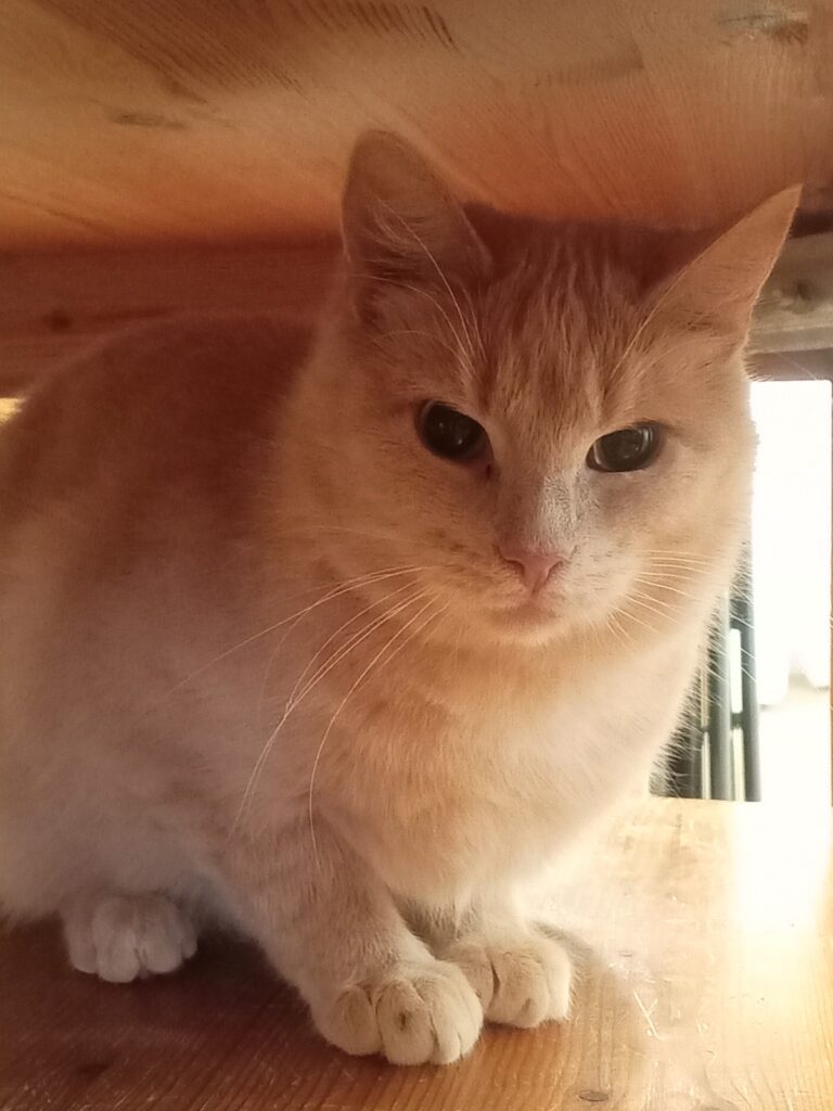Beau is a sweet, soft-hearted boy who enjoys is own space but usually loves a bit of a pet on the head and especially his neck. He is the more nervous of the two boys and it will take a lot more time for him to warm up than little Benji. But, he does not hide anymore, and he happily curls up where he pleases. Sometimes he even walks around prrt-ing in a playful manner! Beau adores dry food much more than wet food, so the home should be alright with at least partially giving the boys dry food. Beau will likely have some nervous peeing issues at the start, but this clears up once he’s found he’s safe and has gotten comfortable in his new home! Beau is healthy aside from juvenile periodontitis, which has to be checked up on regularly.