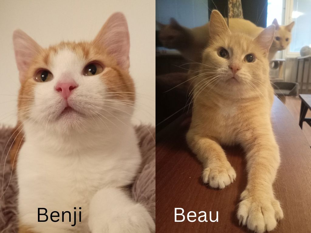 Benji ja Beau ovat suloinen poikakaksikko, jotka on otettu talteen kissapopulaatiosta. Molemmat ovat nuoria: Benji on vielä pentu (8kk) ja Beau noin kaksivuotias.