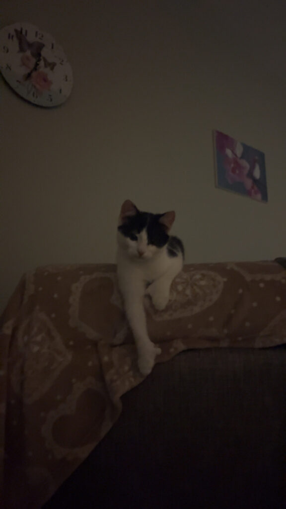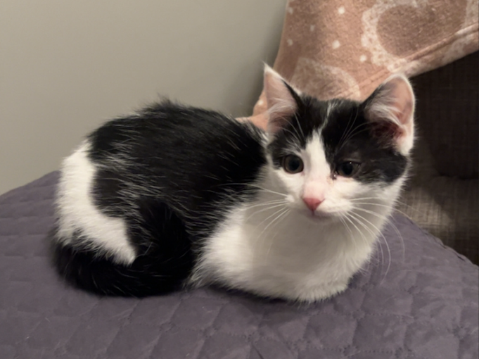 Fiona on noin 4kuukautta vanha, syntymäpäivän arvio on 1.7.2025. Molemmat pentu ja emo ovat tulleet Alajärveltä, ulkona maalla asustaneet, populaatiokissoja. Fiona on sisäsiisti, osaa hienosti käydä hiekkalaatikolla.