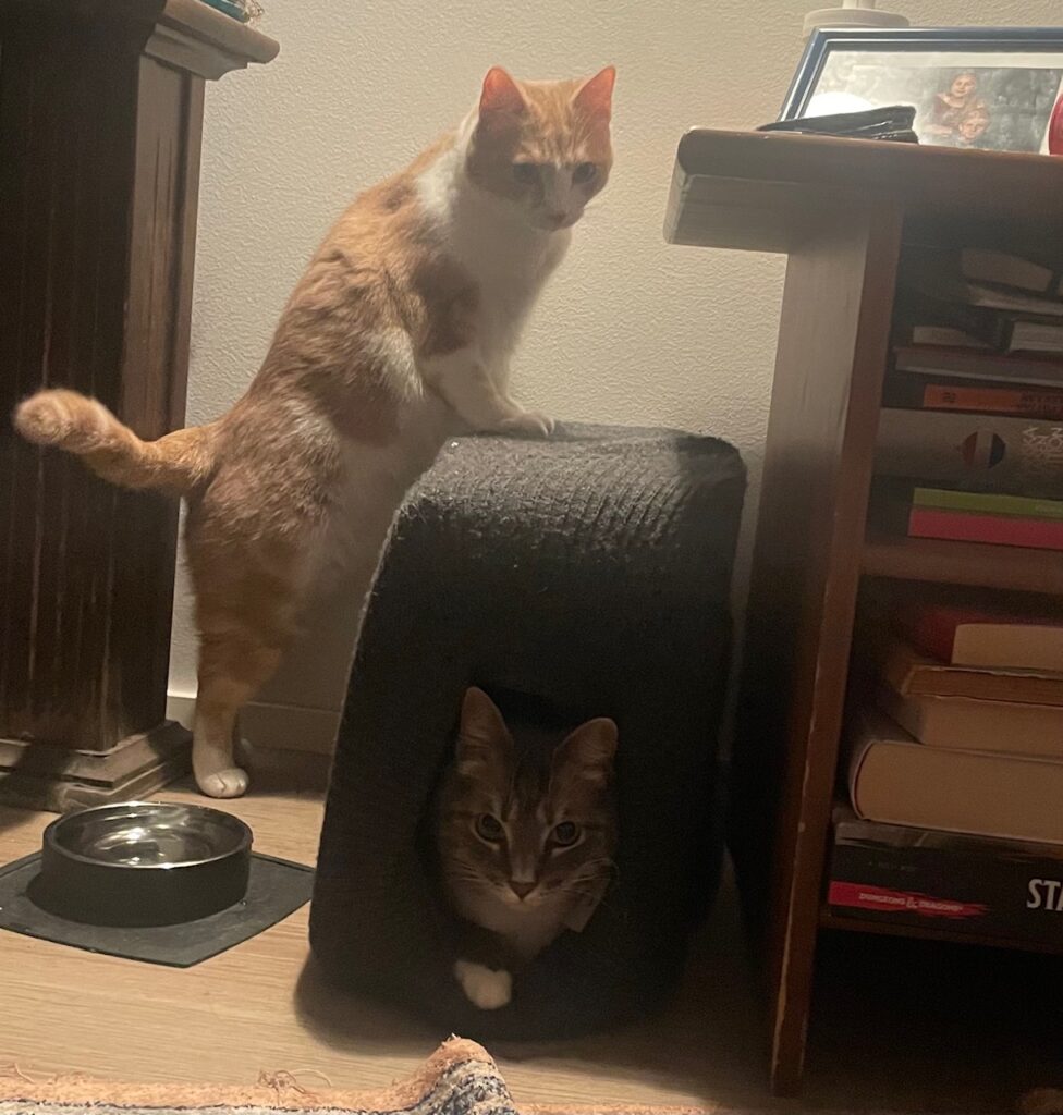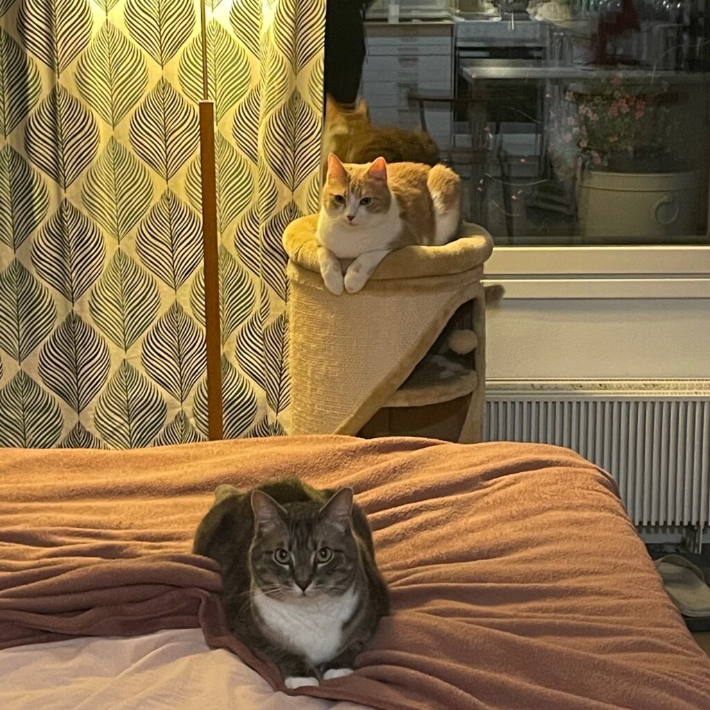 Kissat tykkäävät hengailla ikkunan äärellä ja katsoa mitä ulkona tapahtuu. Kissanpuu on myös ollut kovassa käytössä. Heidän lempparilelu vaikuttaa olevan naru tai laaseri, joskus he innostuvat palloista vähän. Kissat tykkäävät olla ulkona, mutta eivät pidä valjaista, joten parasta heille voisi olla kissojen ulkohäkki.