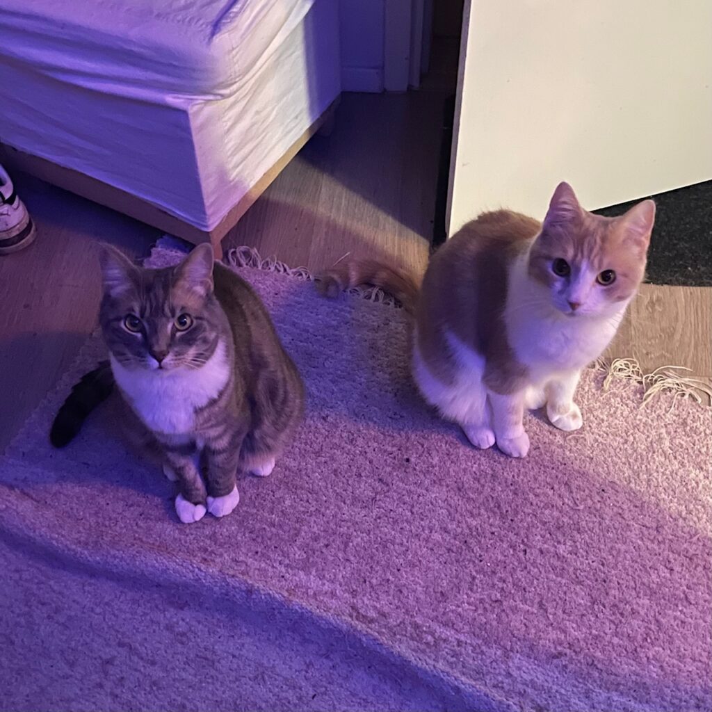 Kissoilla ei ole aiempaa kokemusta lapsista, joten emme osaa luvata että sopisivatko he perheeseen jossa on pieniä lapsia. Kissat kuitenkin ovat edellisessä kodissaan pärjänneet koirien kanssa hyvin. Kissat ovat myös tulleet toimeen toisien kissojen kanssa ja ovat tosi kiinnostuneita heistä, mutta eivät ole aiemmin asuneet toisten kissojen kanssa.