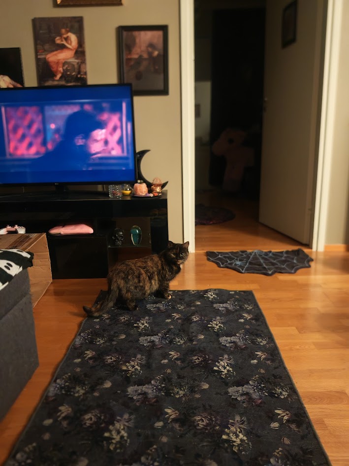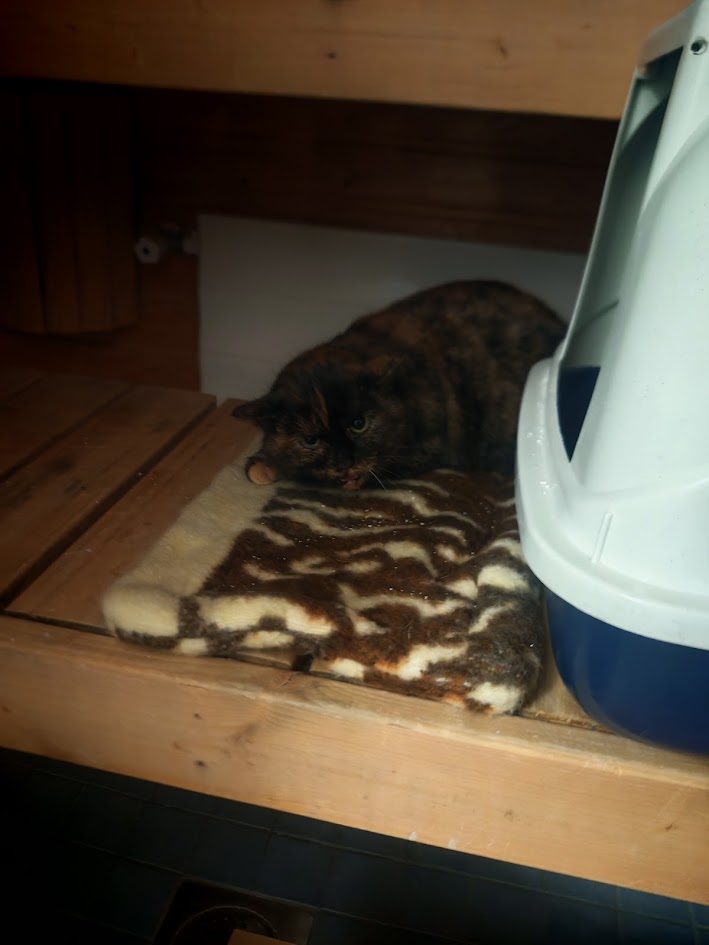 Chiliperunakaksikon äkäisempi osapuoli, 2-vuotias kilpparipallo Johanna, on ollut ensikodissa nyt kolme viikkoa. Johanna eli ensimmäisen viikkonsa ihmisasutuksessa saunassa, ja sen jälkeen on siirtynyt sosiaalitiloihin muiden kissakaverusten seuraan. Suurempia ystävyyssuhteita ei ole vielä syntynyt muiden kissojen kanssa, mutta huomattavaa eripuraakaan ole havaittavissa. Ihminen on edelleen vielä hirveä ja ällö ja mitään toivoa ei ole esimerkiksi silittämisestä. Päiväsaikaan turvallisinta onkin piileksiä esimerkiksi sohvan ja patterin välissä.