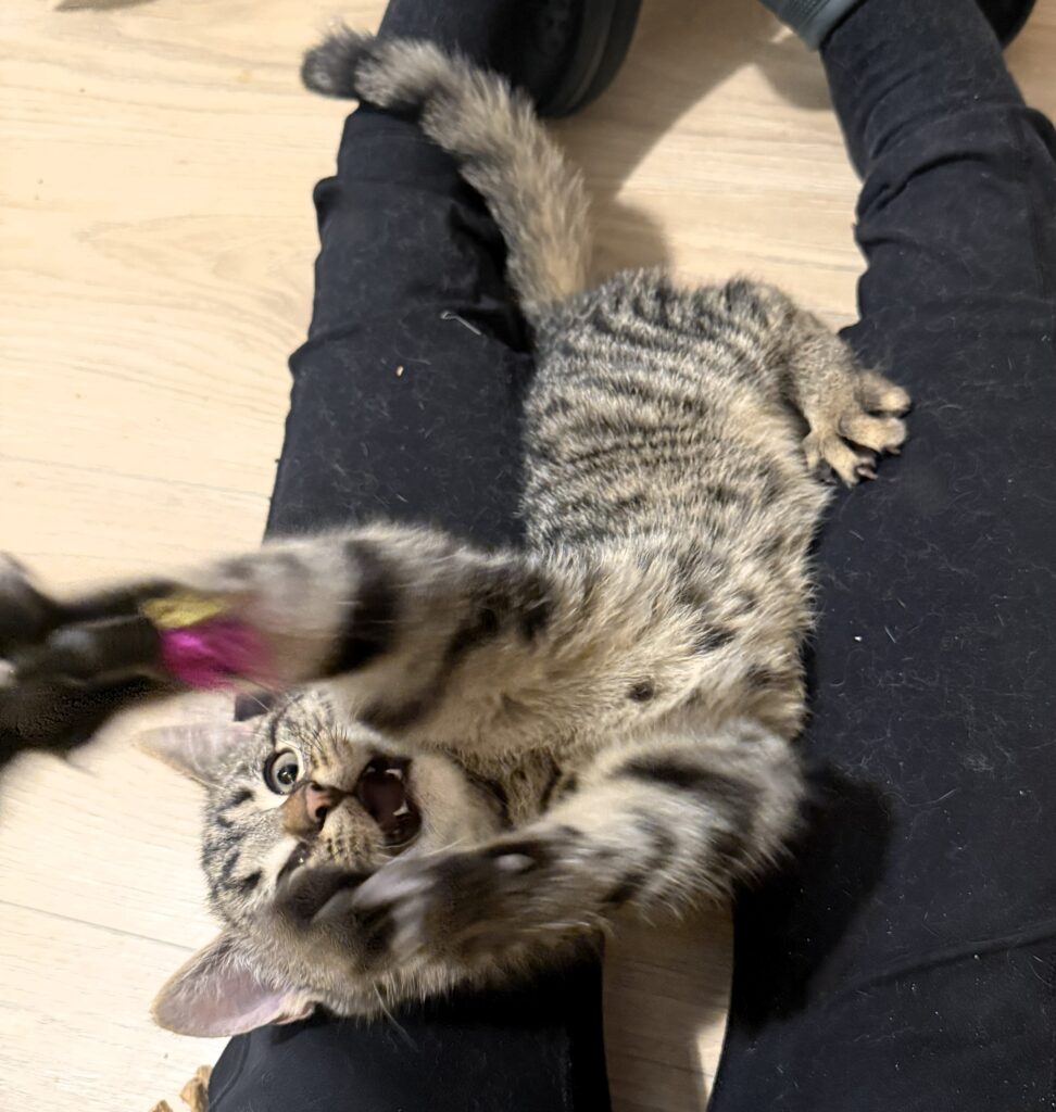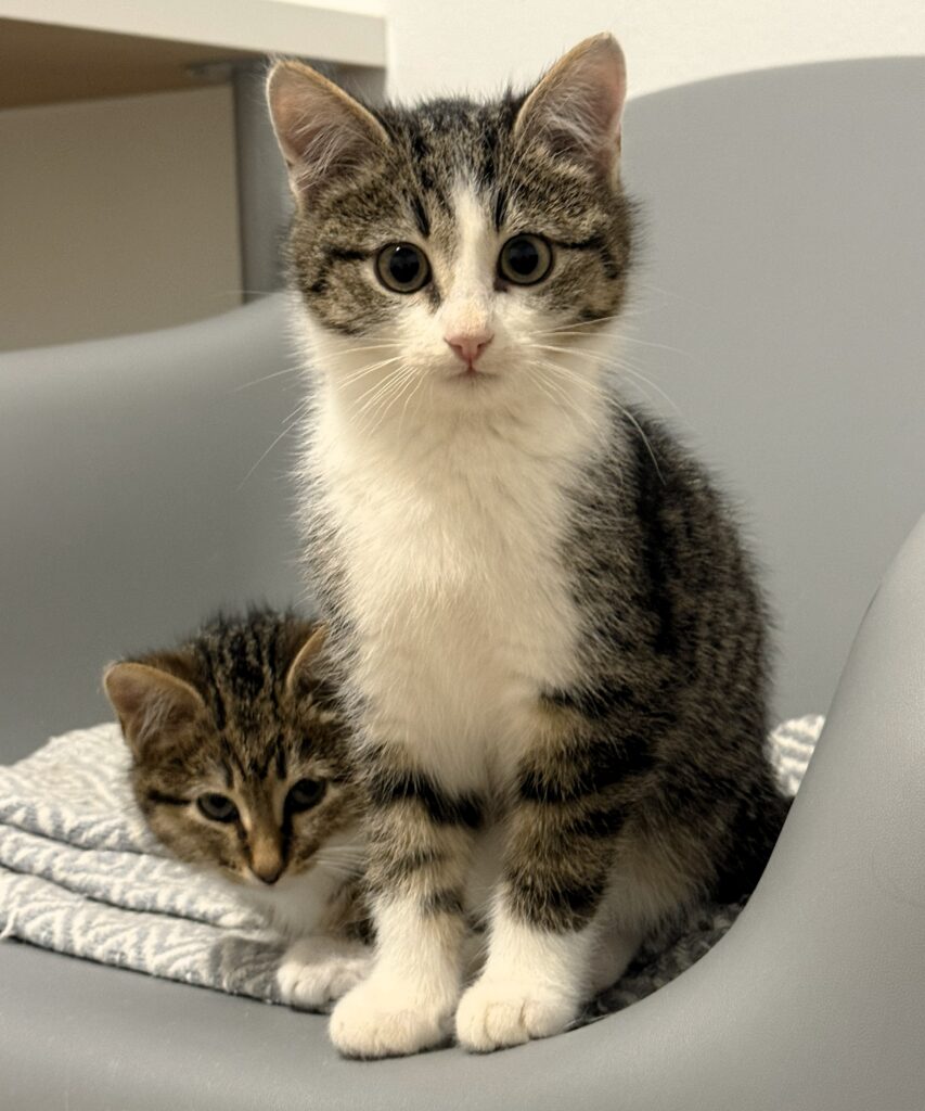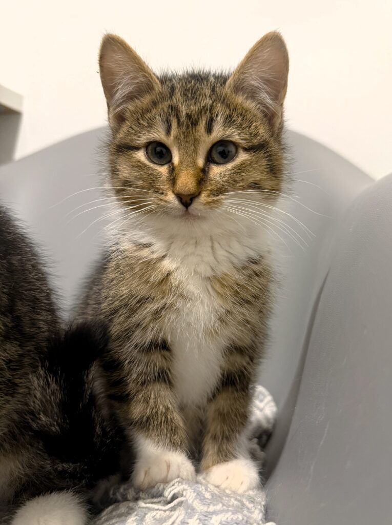 The kittens are primarily adopted out in pairs, as they provide each other with security, companionship, and support as they adjust to their new lives. Joyce is looking for a home that already has a friendly and social cat, who can set an example for her and help her gradually gain more confidence around people.