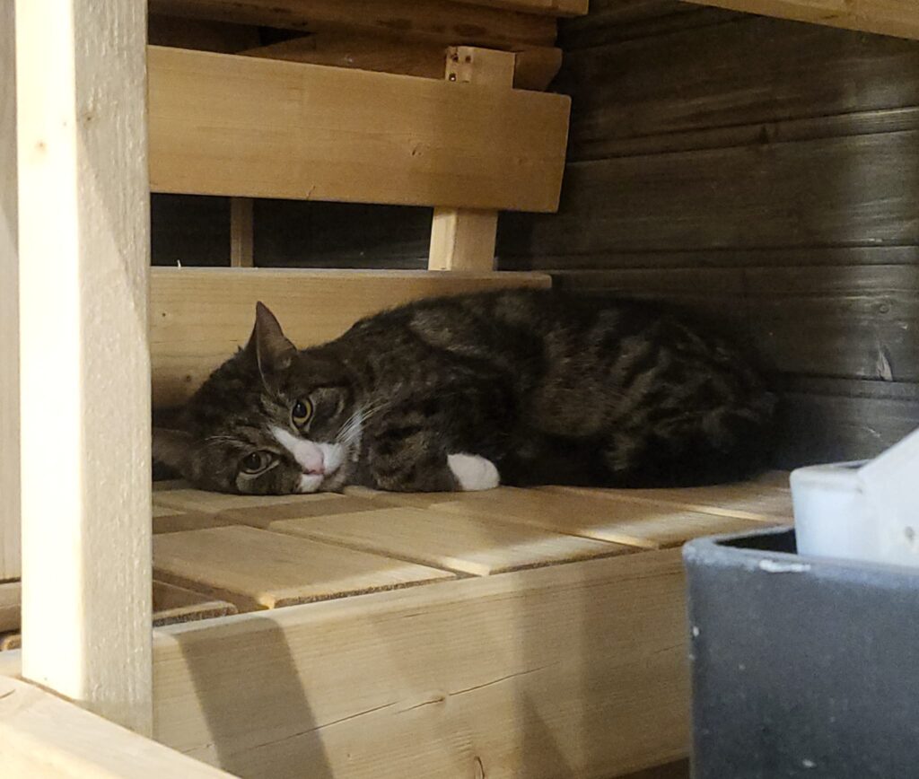 Kun Jussin kanssa on viettänyt päivittäin aikaa, on hän alkanut rentoutumaan, jopa antanut ihmisen hieman leikittää häntä. Kaikista mieluiten Jussi leikkii itsekseen, ja yöllä voikin käydä kolina, kun tämä leikkimielinen kissa pääsee valloilleen!