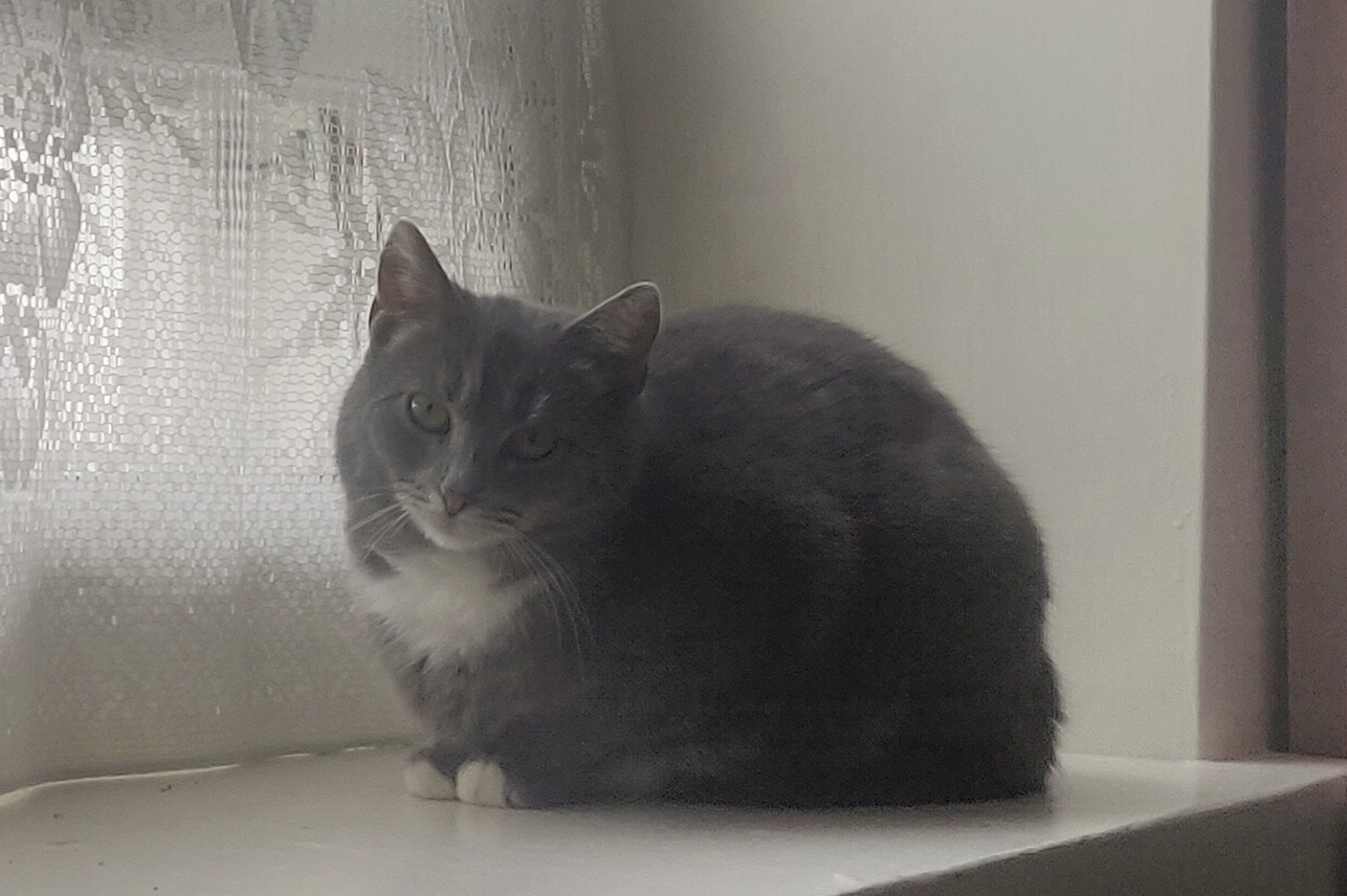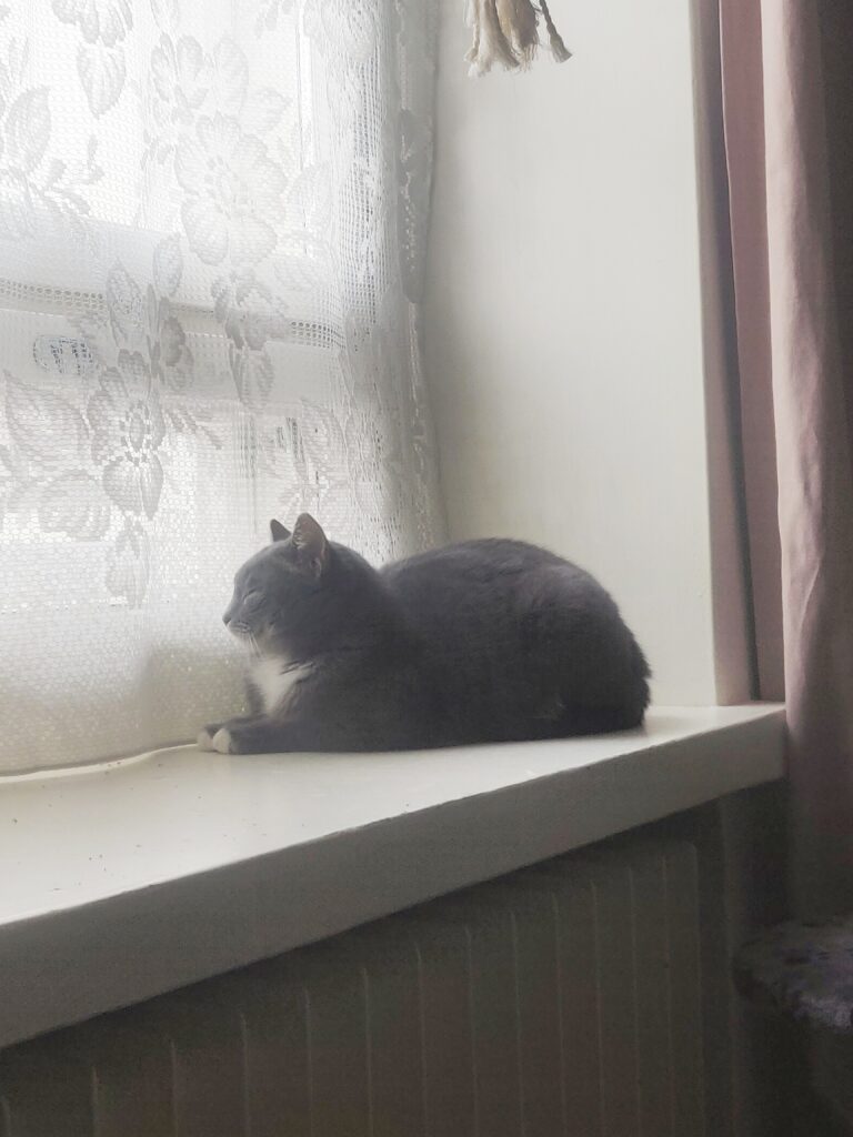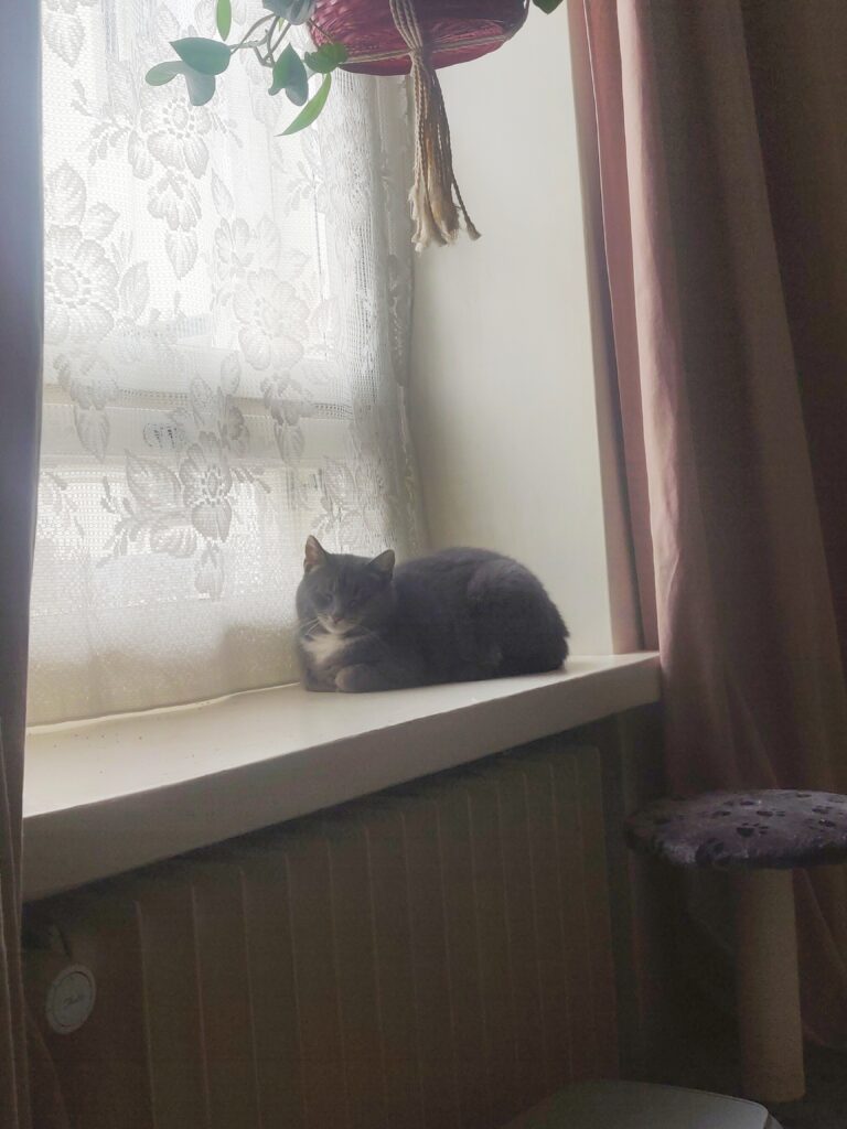 Suloinen Kitkat on jo useamman kuukauden ajan harjoitellut elämää ihmisen kodissa ja on nyt alkanut näyttää rentoutumisen merkkejä. Liikkuu ja leikkii jo päiväaikaankin ihmisen nähtävillä, mutta luikkii nopeasti takaisin turvaan kun alkaa jännittää liikaa. Seuraa uteliaana turvapaikastaan katonrajasta kun laatikoita siivotaan/ruokia täytetään 🙂