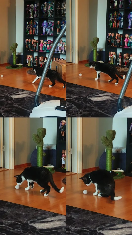 Eritoten erilaiset pallopelit ovat hänen suosikkejaan, tai minkä tahansa lelun muiluttaminen ja jahtaaminen pitkin lattioita niin että matot lentelee. Kristiina menee myös mielellään hippaa kaverien kanssa, ottaa nokosia kolleihin nojaillen ja tutkailee ikkunalaudalta Keravan tapahtumia.