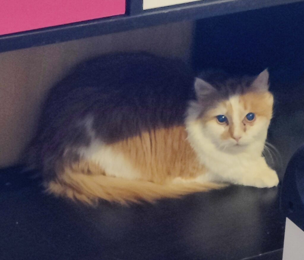 Lotta on noin 2-vuotias puolipitkäkarvainen naaras, joka on otettu talteen yli 40 kissan ulkopopulaatiosta tammikuun kovilla pakkasilla. Lotta on vielä kovin arka, mutta ei ole purrut tai raapinut ensikodin ihmisiä. Äkkinäiset liikkeet voivat aiheuttaa hermostuneen suhautuksen.