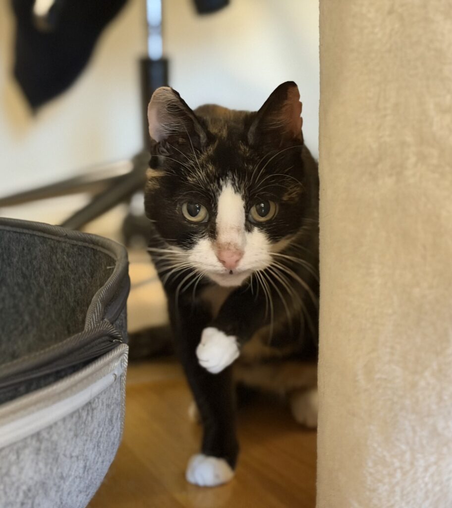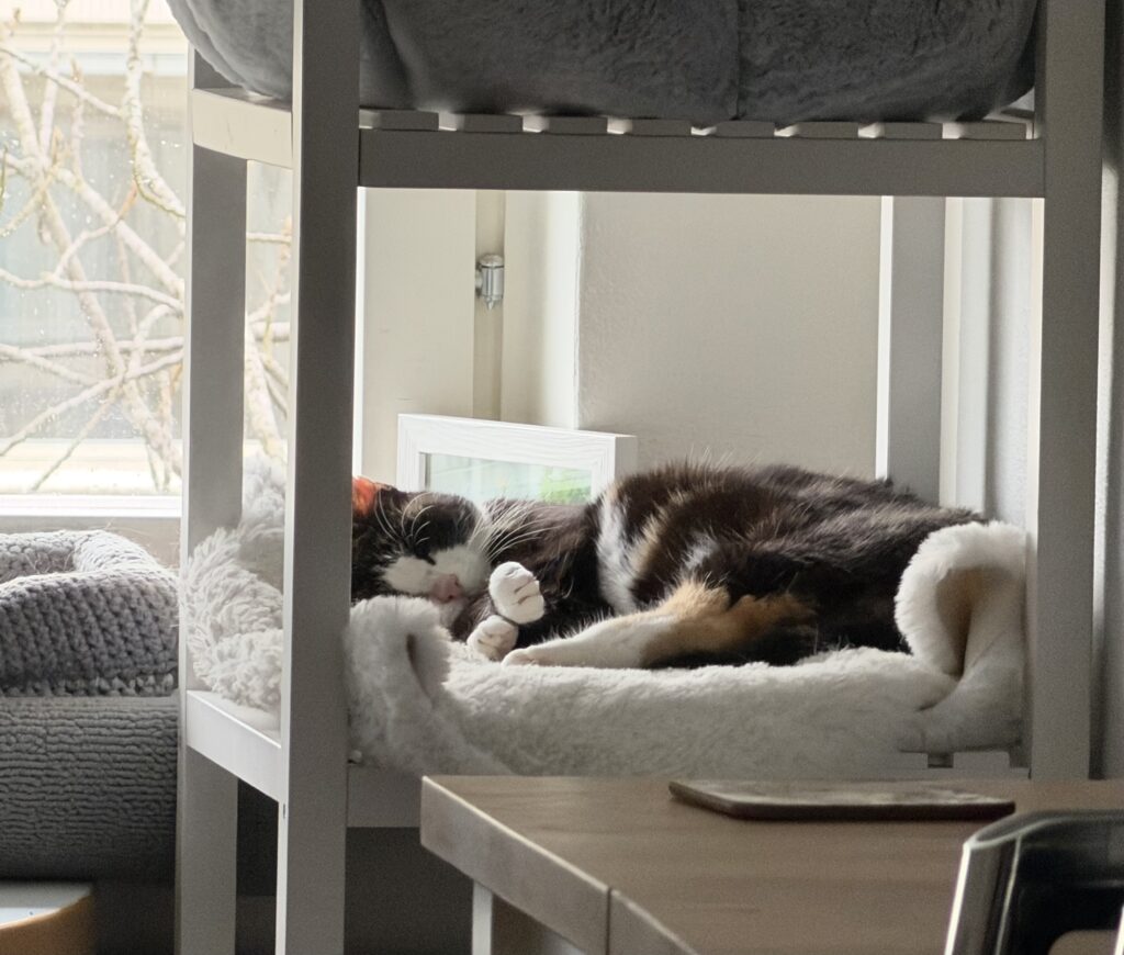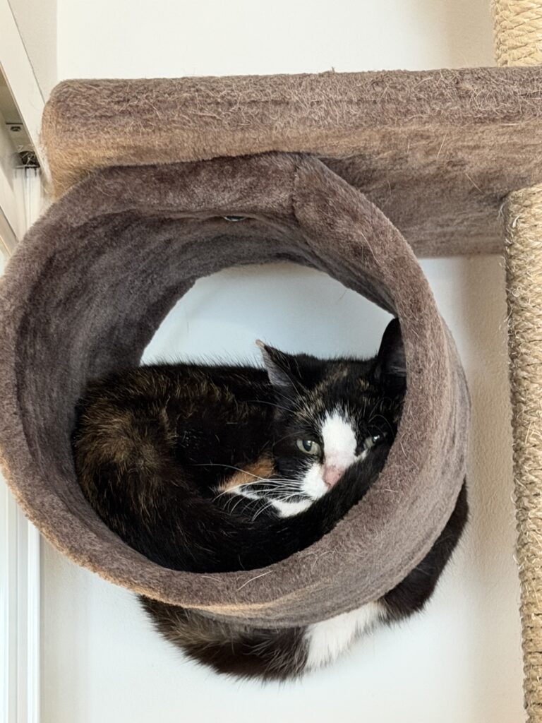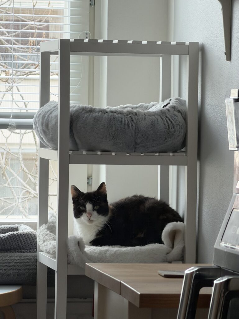 Senja – or Sensei, as the foster home calls her – is an approximately 3-year-old short-haired tortoiseshell who came to the organization from an outdoor cat population. She is learning about indoor life in her foster home in Helsinki.