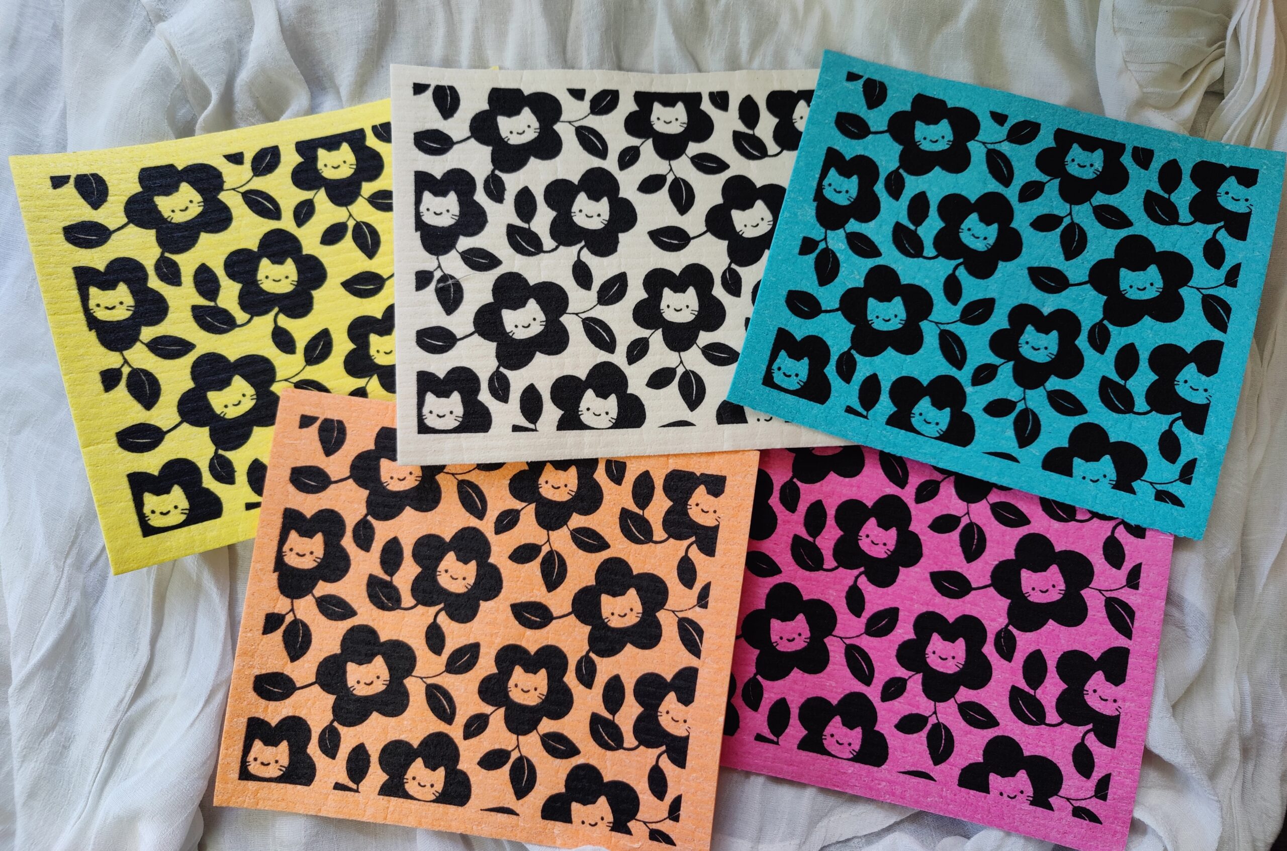 Kisun kannatustuote, tiskirätti, viidessä värissä